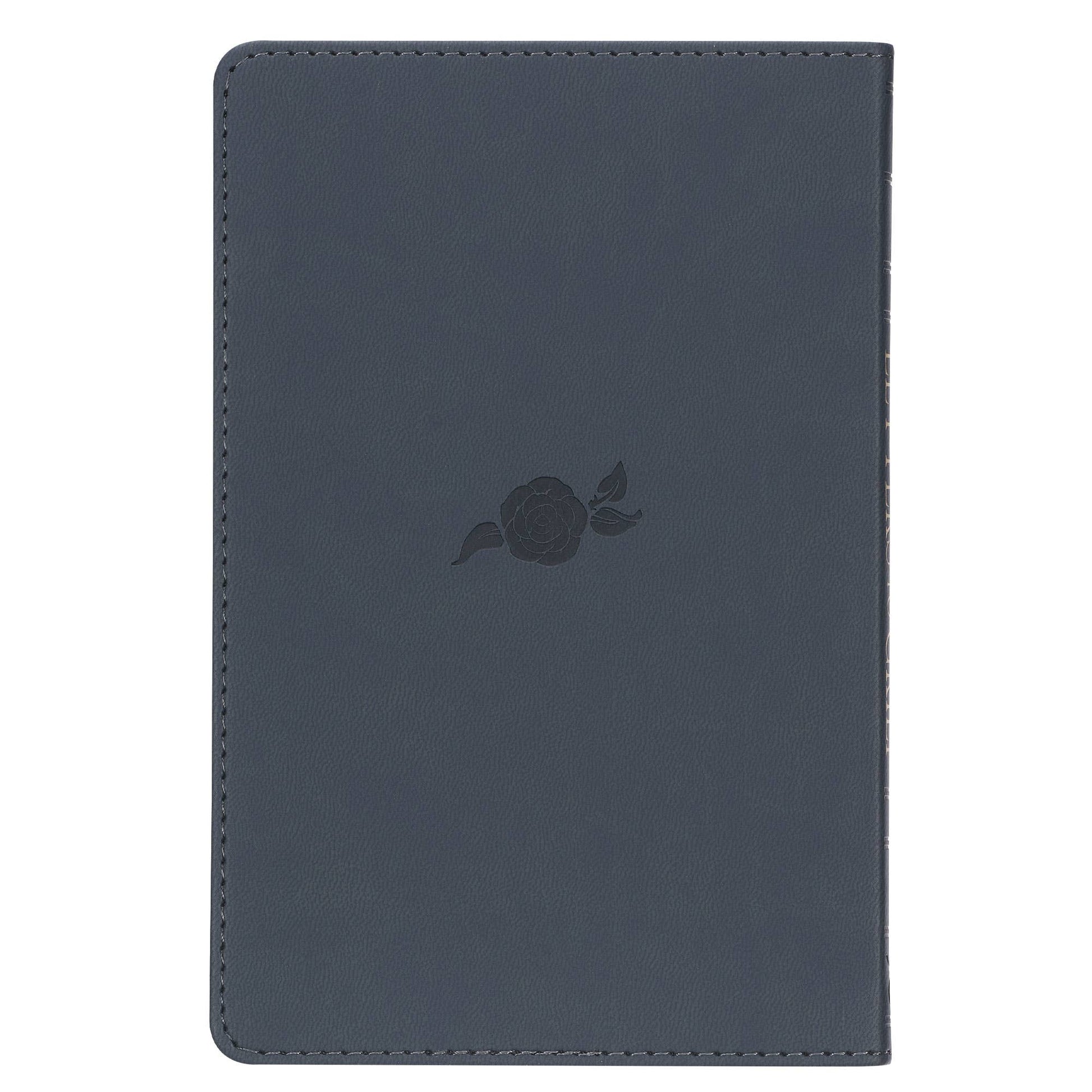 Heat-debossed rose border, Slate gray faux leather, Gold-foiled title, Flexcover, Two-color interior, Satin ribbon marker, 128 gilt-edged pages, 12 prayers, Size: 7.2" x 4.8" x 0.5" (183 x 122 x 13mm)