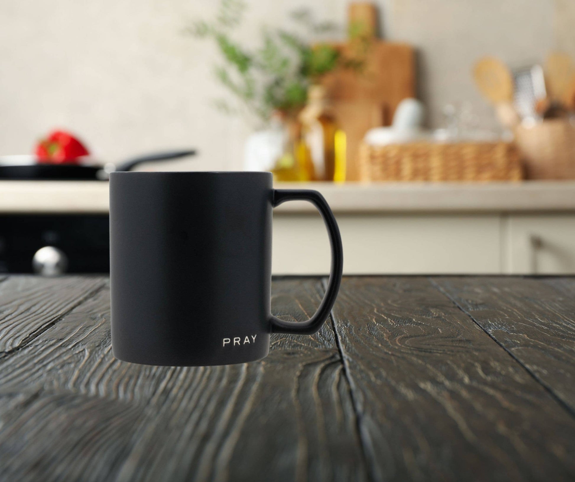 The Simply Yours collection, designed by Lighthouse Christian Products, conveys an encouraging message with just a word; Features a sentiment that reads, "Pray," with an etched or engraved looking accent; Holds approximately 18 fluid ounces of your favorite hot or cold beverage; Enjoy coffee, cold brew, tea or hot chocolate in this artisan style cup; Cup made of durable ceramic stoneware with a classic, matte paint finish; Microwave and top rack dishwasher safe; Lighthouse Christian Products partners with A Better Life for Kids to provide nutritious food, clean water, safe housing, education opportunities and love for children and families in Ghana, Africa - Your purchase helps make this meaningful work possible; Price is per mug on this set.