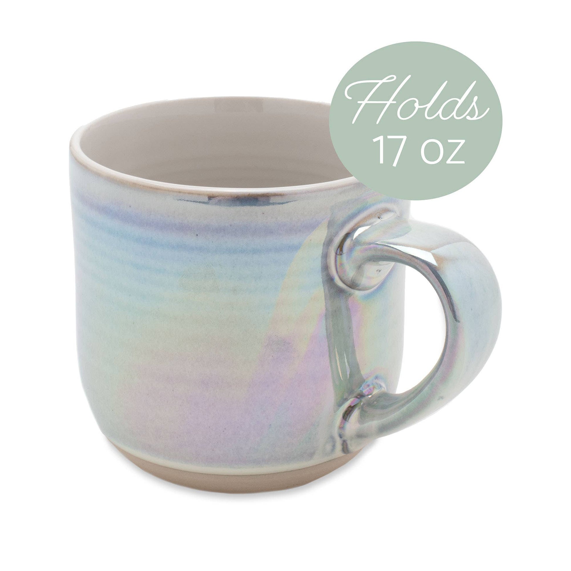 ABSOLUTELY STUNNING: Fun and vibrant color with high gloss finish shows off your personality. Add a little glamour to your drinkware or a splash of color year-round with this pretty accent cup. The use of reactive glaze creates a unique effect which means no two mugs will be alike. MODERN FARMHOUSE: Made of ceramic stoneware with a thrown pottery, handcrafted look. Each mug holds approximately 17 fluid ounces of your favorite hot or cold coffee, tea, latte, or cocoa. FUNCTIONAL & GORGEOUS: Add to your morning routine of coffee or nightly herbal tea. A large handle makes this mug comfortable to hold, which is ideal when you are sipping your drinks. EASY CLEAN UP: Top drawer dishwasher and microwave safe for no fuss and quick cleaning; Stack and store, or hang on a mug wall for decorative, beautiful display in your home café or coffee bar. GREAT FOR GIFTING: Ships together in a fitted, protective box; Ready to be gifted. Price is per mug on this set.