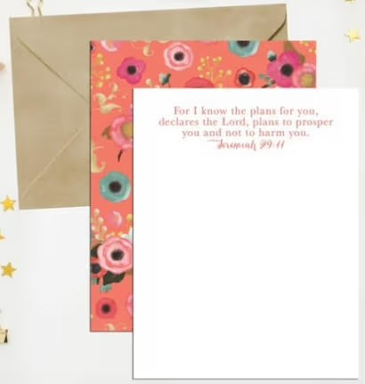 These beautiful note cards come with matching envelopes and are perfect for personal or professional use. Share your thoughts and inspire others with the uplifting message "For I know the plans I have for you" from Jeremiah 29:11.