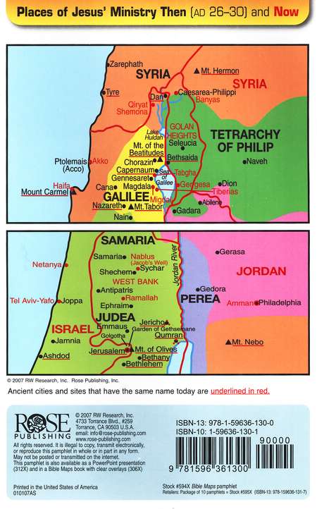 Where are the Bible lands today? Where were Iraq and Iran in Bible times? Find out with the full-color, fold-out pamphlet that contains 17 maps showing ancient cities and countries in black with modern-day boundaries marked in red. A fantastic tool for comparing places in the news with places in the Bible, Then & Now Bible Maps will also help you better understand the events and stories in the Bible by showing you where they occurred in conjunction to modern day locations. Helpful historic information includes: