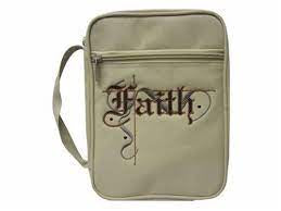 Neutrals tan and brown faith design on canvas bible cover for men or women. Includes a handle to make it easier to carry the bible and a secure zipper to keep everything inside