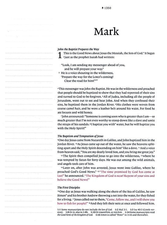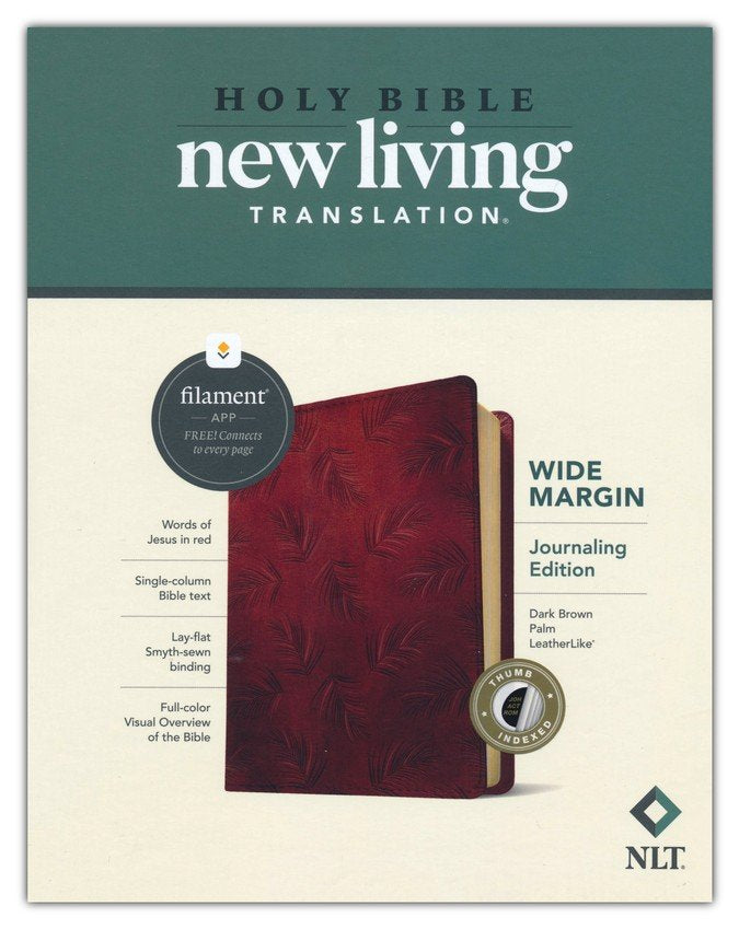 The NLT Wide Margin Bible, Filament-Enabled Edition provides God's Word to you in a single-column format with spacious margins for you to write down your thoughts and prayers or express yourself creatively next to your favorite passages. This journaling Bible, combined with the Filament Bible app, will help you to explore and understand Scripture for all that God intended for it to be!
