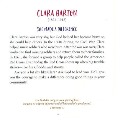 Give 5- to 8-year-old girls role models who might inspire them to become world changers! These stories will empower them to understand that women make an important contribution to our world, and that our faithful impact would be much smaller without Clara Barton, Corrie ten Boom, Mother Teresa, Sojourner Truth, Harriet Tubman, and others.