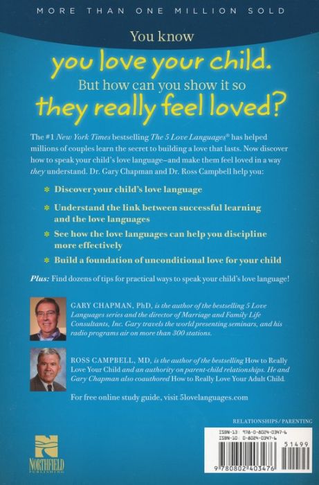 The #1 New York Times bestselling The 5 Love Languages® has helped millions of couples learn the secret to building a love that lasts. Now discover how to speak your child’s love language in a way that he or sheunderstands. Dr. Gary Chapman and Dr. Ross Campbell help you: