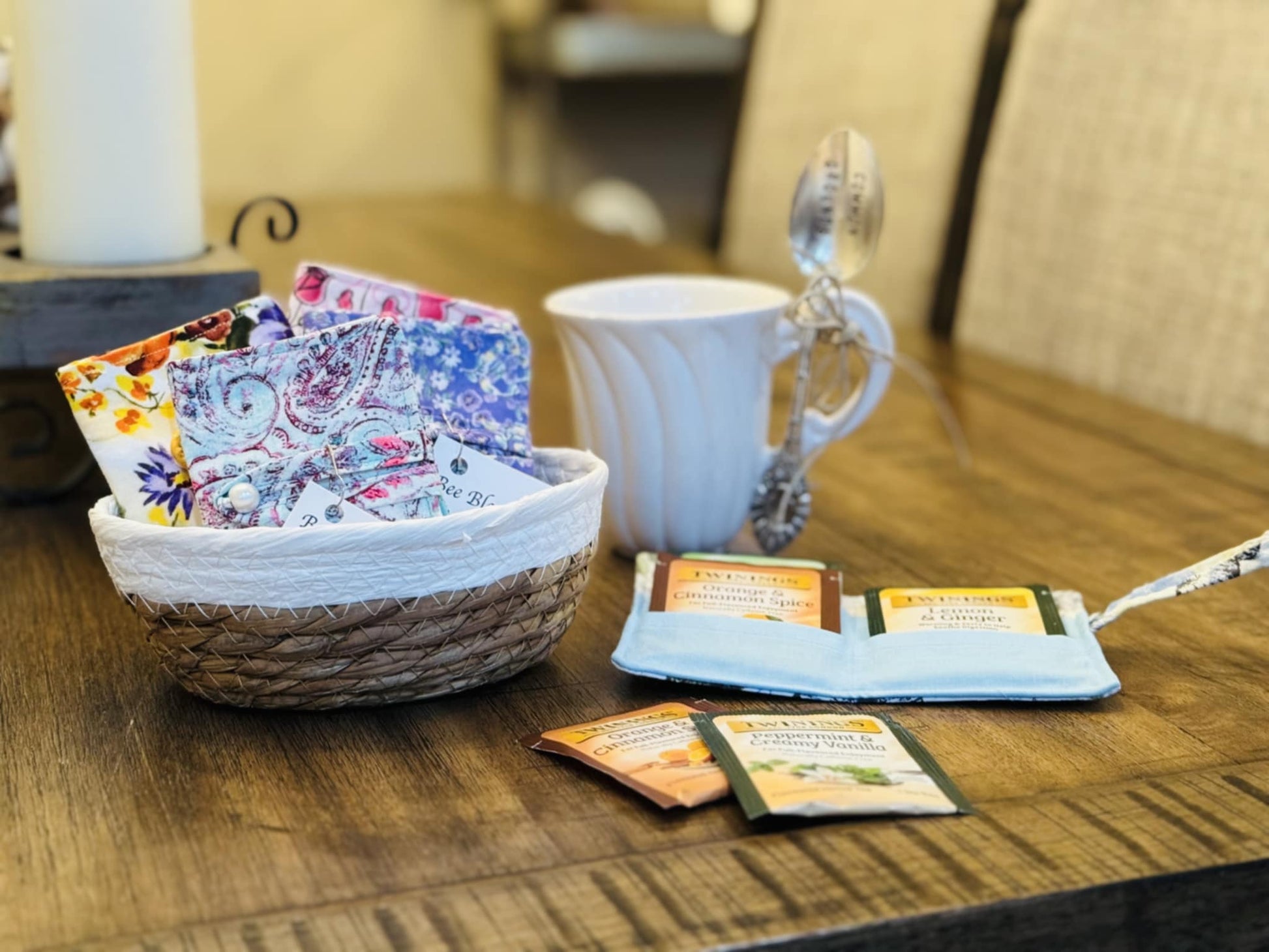 Keep your tea bags organized and ready for a cozy moment with the BEE Blessed Tea Bag Wallet. This handmade, hand-sewn wallet is perfect for storing your favorite tea bags on the go or at home. Its charming design adds a playful touch to your tea routine while keeping everything neat and accessible. A sweet little companion for every tea lover!