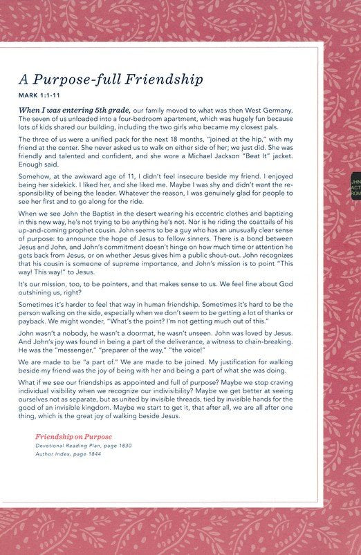 (in)courage is a vibrant online community. It reaches thousands of women every day. It welcomes them just the way they are. It offers a space to breathe, loving support, and resources for meaningful connection. Find yourself among friends with the (in)courage Devotional Bible today!