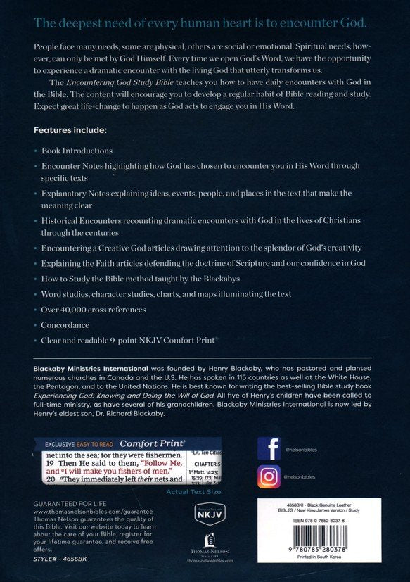 The Blackaby family has been guiding believers, for decades, into experiencing God through their books, as they have always understood and experienced Him themselves - but now - this trusted family has poured their lives into bringing believers into a sacred vulnerability with God's Word in the NKJV Encountering God Study Bible. This is a true study Bible - from the authors of the bestselling book Experiencing God: Knowing and Doing the Will of God - and their wealth of insight and experience is brought alongside the biblical stories with the intention to bring you into contact with your Heavenly Father and His Word.