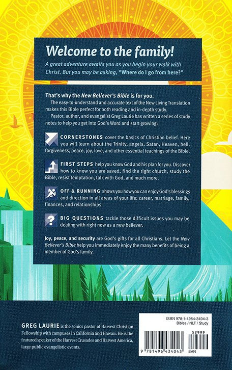 The NLT New Believer's Bible is for the believer, old or new, that is asking, "Where do I go from here?" The influential and respected pastor, author, and evangelist Greg Laurie has written articles specially compiled to start you on a path into God's Word and encourage you to plant biblical roots and begin to grow as Christ intended. With the practical language of the New Living Translation, experience the joy, peace, and security from being a member of God's family.
