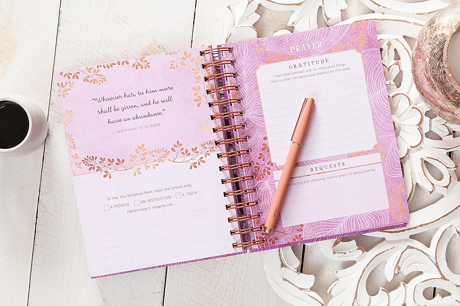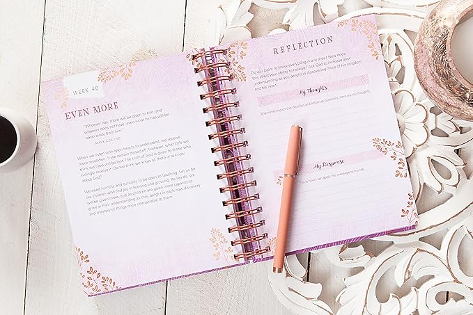 This beautifully designed devotional journal for women features meditations, thought-provoking prompts and questions, and encouraging quotes and Scriptures that will help your weekly devotional life to be focused and intentional.