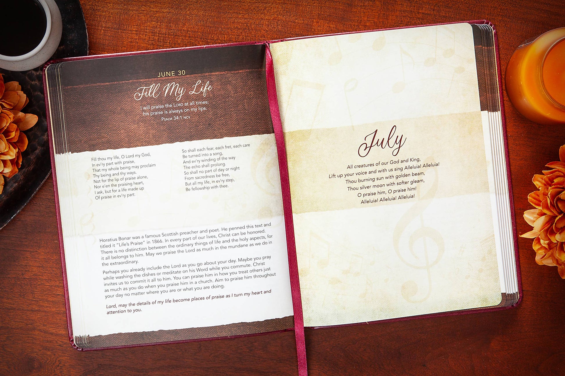 The Greatest Hymns Devotional reflects on one hymn each day, providing an interesting fact, thoughtful meditation, relevant Scripture, and inspiring prayer provoked by the hymn. As you spend time contemplating each entry, be reminded of God’s faithfulness, goodness, and grace.