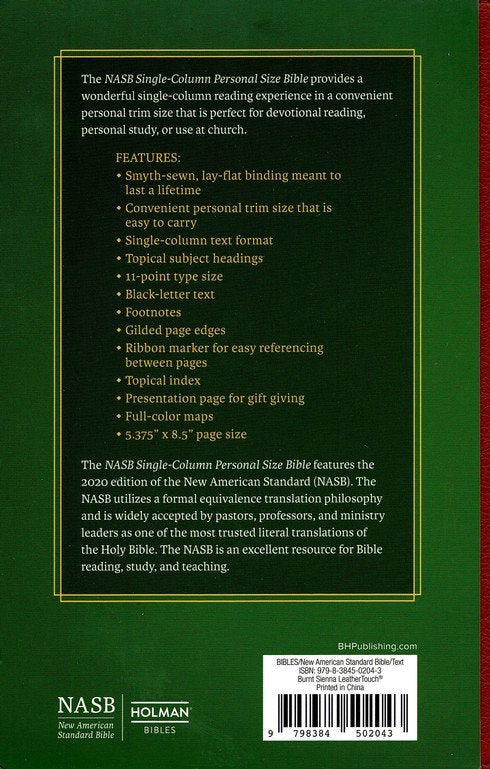 NASB Single-Column Personal Size Bible, Burnt Sienna LeatherTouch
