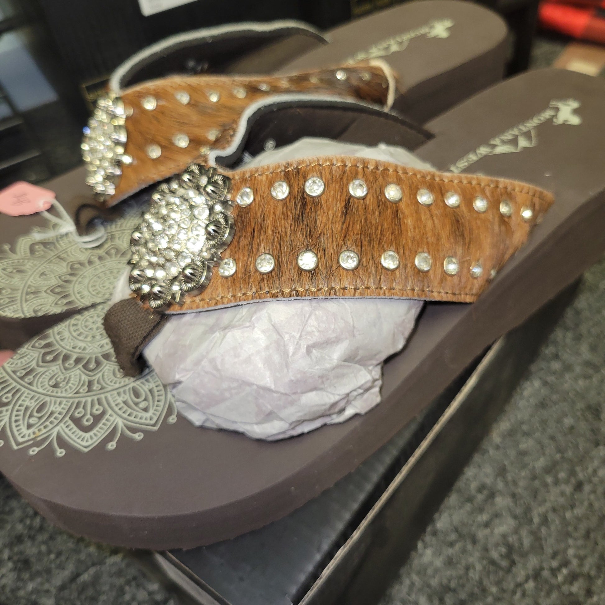 Saving Grace Tee Co- Montana West Flip Flops, Coffee Brown cowhide