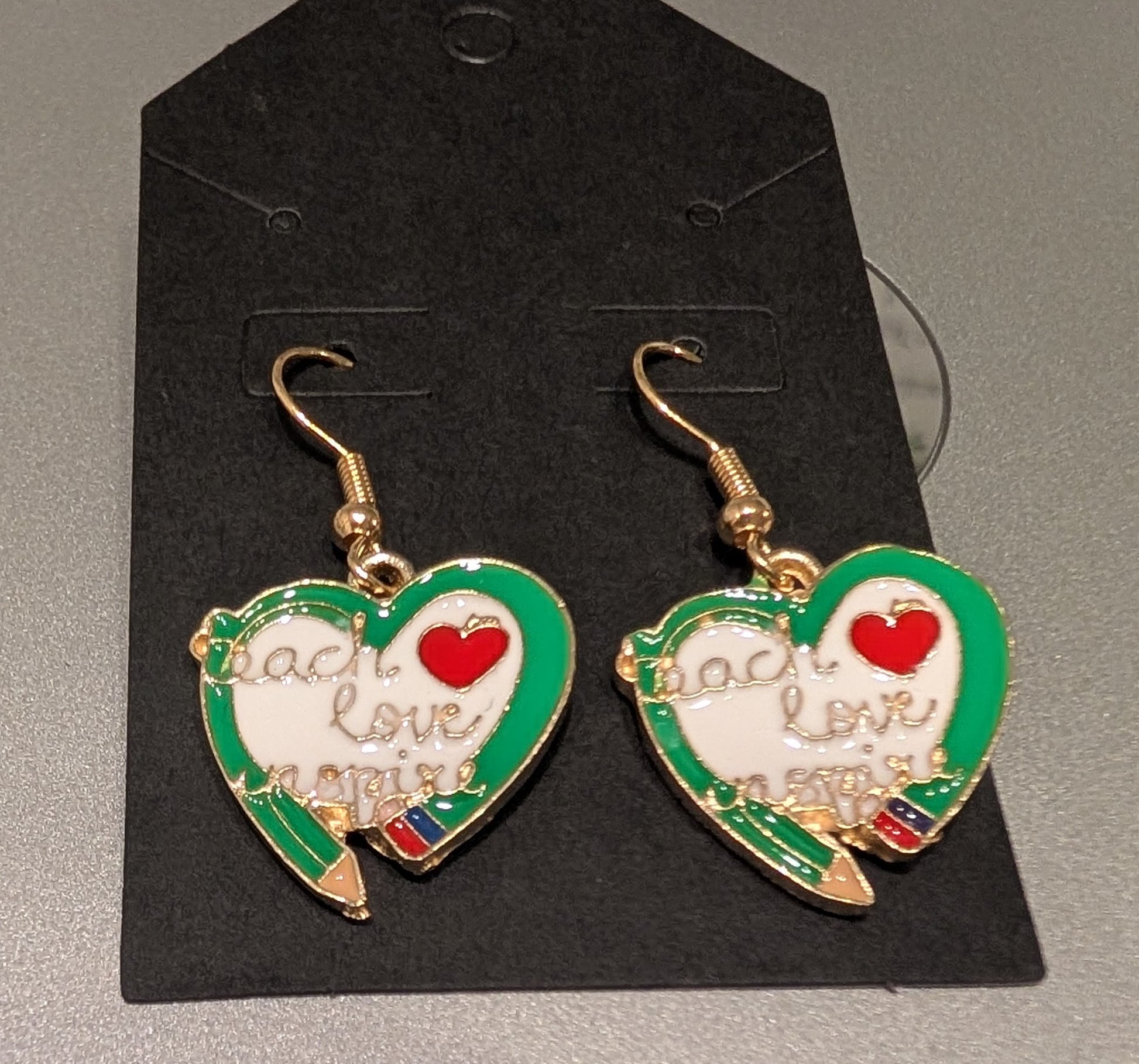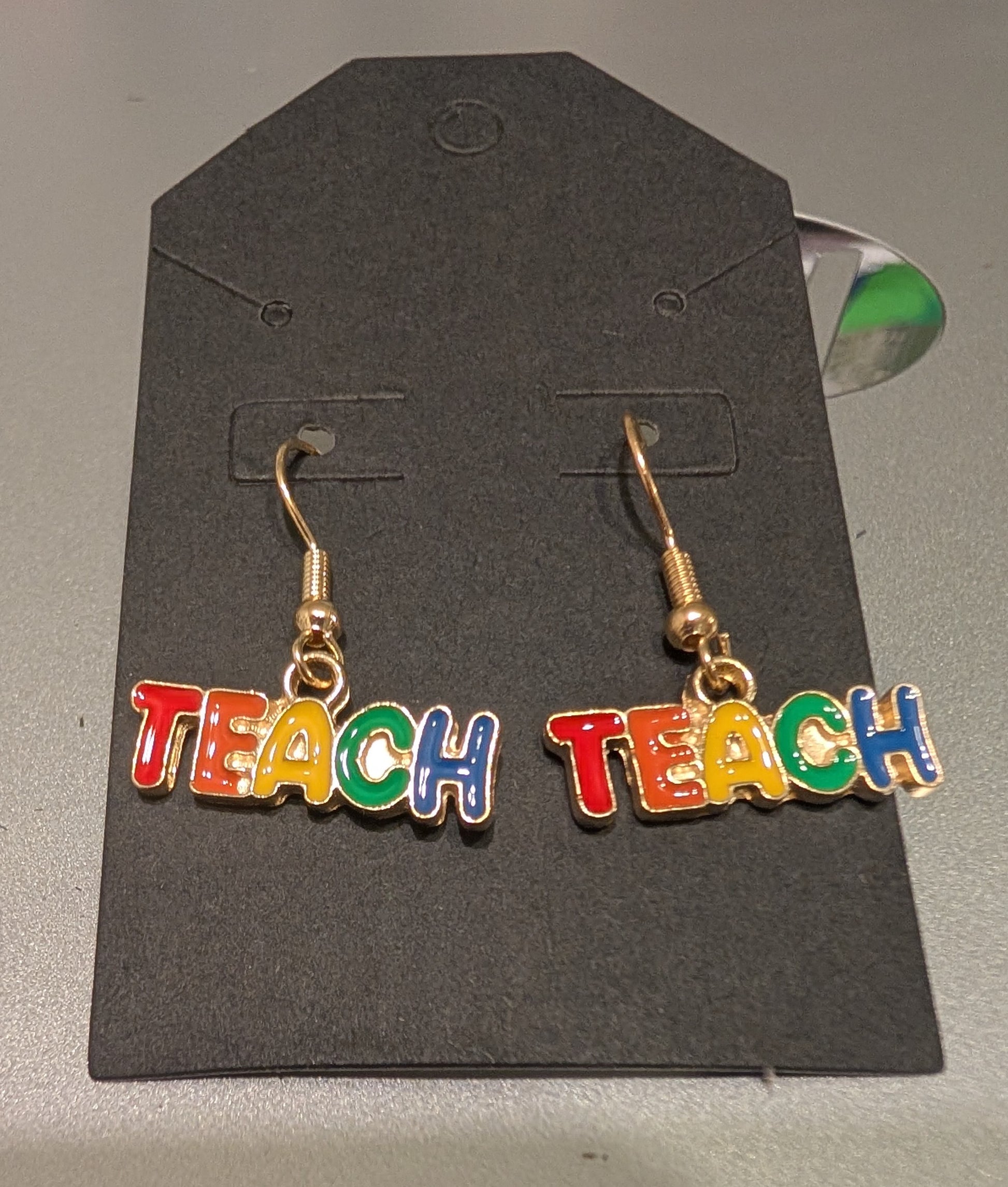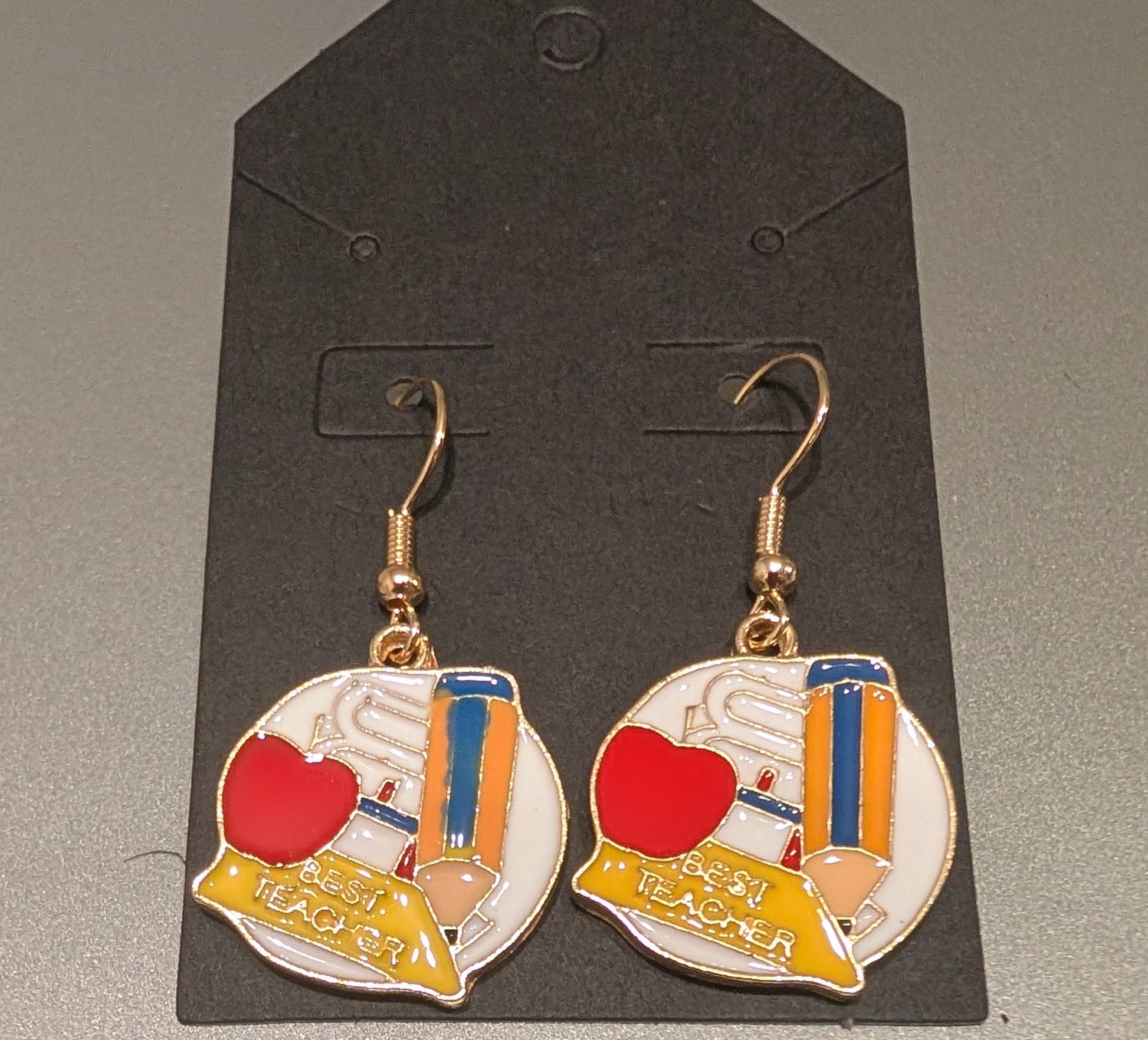 This Cute little bright and colorful Teacher Earrings are prefect for your child's new teacher. There are only 2 pairs of each one.