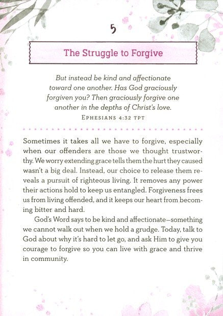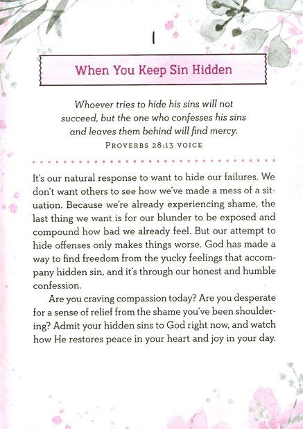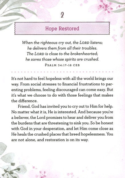 From Bankruptcy and Chronic Pain to Death of a Parent and Job Loss, no matter what you're facing, here you'll find the comforting, sustaining wisdom of scripture. Each verse is paired with a devotional thought that is equal parts practical and encouraging. Strengthened and renewed, you will be anchored to a solid foundation of faith.