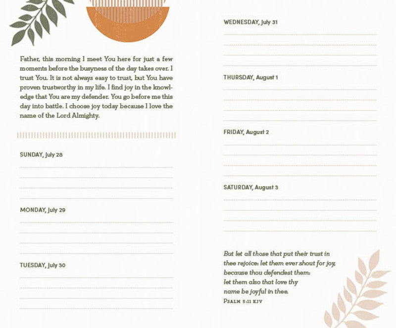 Want to discover the secret to a fulfilling life? Ideal for personal, business, or school use, this practical and encouraging Pause and Pray 17-month planner includes inspiring monthly devotional-like prayers, plus faith-building scripture selections and prayer starters for every week of the calendar year. Featuring monthly and weekly calendars, a year-at-a-glance section, pages for frequent contacts, and more, this planner offers an important reminder for organizing the details of everyday life: the all-powerful God you serve is interested in everything you have to say—every day of the year!