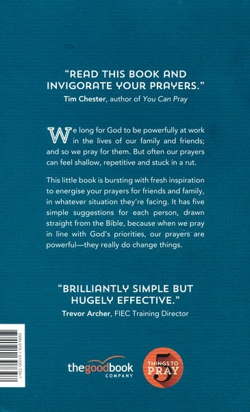 We long for God to be powerfully at work in the lives of our family and friends; and so we pray for them. But often our prayers can feel shallow, repetitive and stuck in a rut. This little book is bursting with fresh inspiration to energize your prayers for friends and family, in whatever situation they're facing. It has five simple suggestions for each person, drawn straight from the Bible, because when we pray in line with God's priorities, our prayers are
