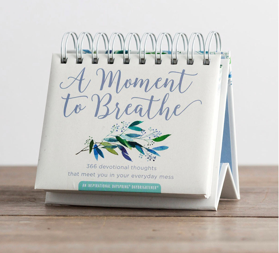 When the rush of regular life leaves you breathless by day's end, this A Moment to Breathe DaySpring DayBrightener becomes the place where you can find yourself among friends. Friends who have been there. Friends who'll say, "Me too!" With thoughts and stories from eighty writers, across 366 days, these pages become the very place your soul can exhale.