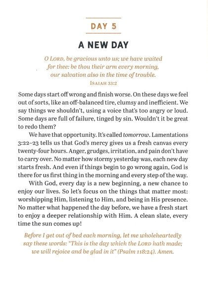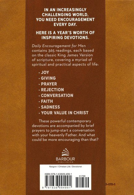 Daily Encouragement for Men contains 365 readings, each based on the classic King James Version of scripture, covering a myriad of spiritual and practical aspects of life: