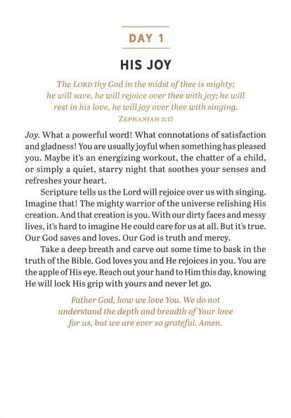 These powerful contemporary devotions are accompanied by brief prayers to jump-start a conversation with your heavenly Father. And what could be more encouraging than that