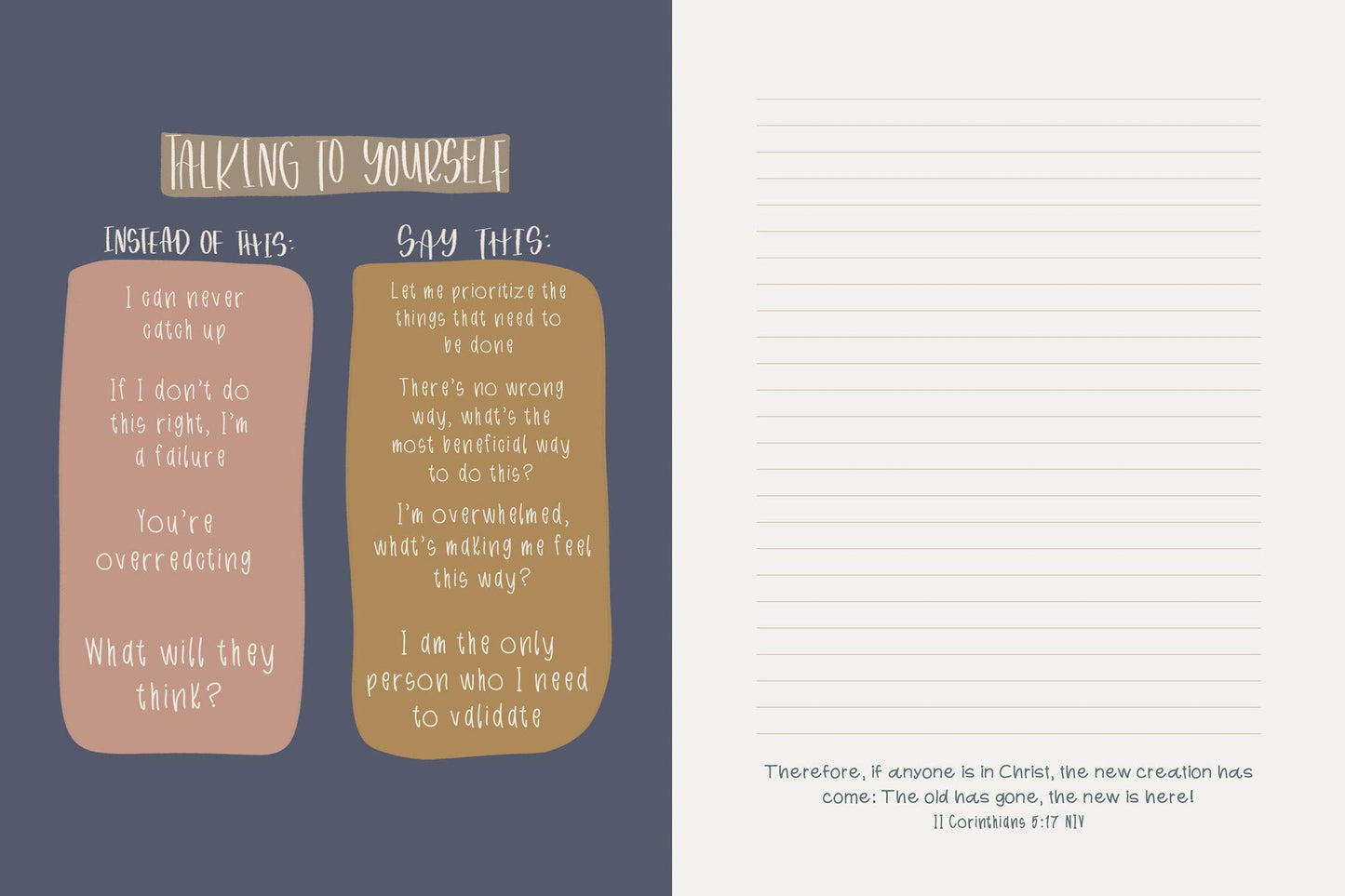 With reminders to pause, let go of what doesn't matter, and stay focused on God's love for you to calm your anxious thoughts and embrace his peace. This inspirational lined journal is filled with God's promises from scripture and encouraging personal affirmations making it easy to reflect, pray, pour your anxious heart out and remember that Jesus has got this!