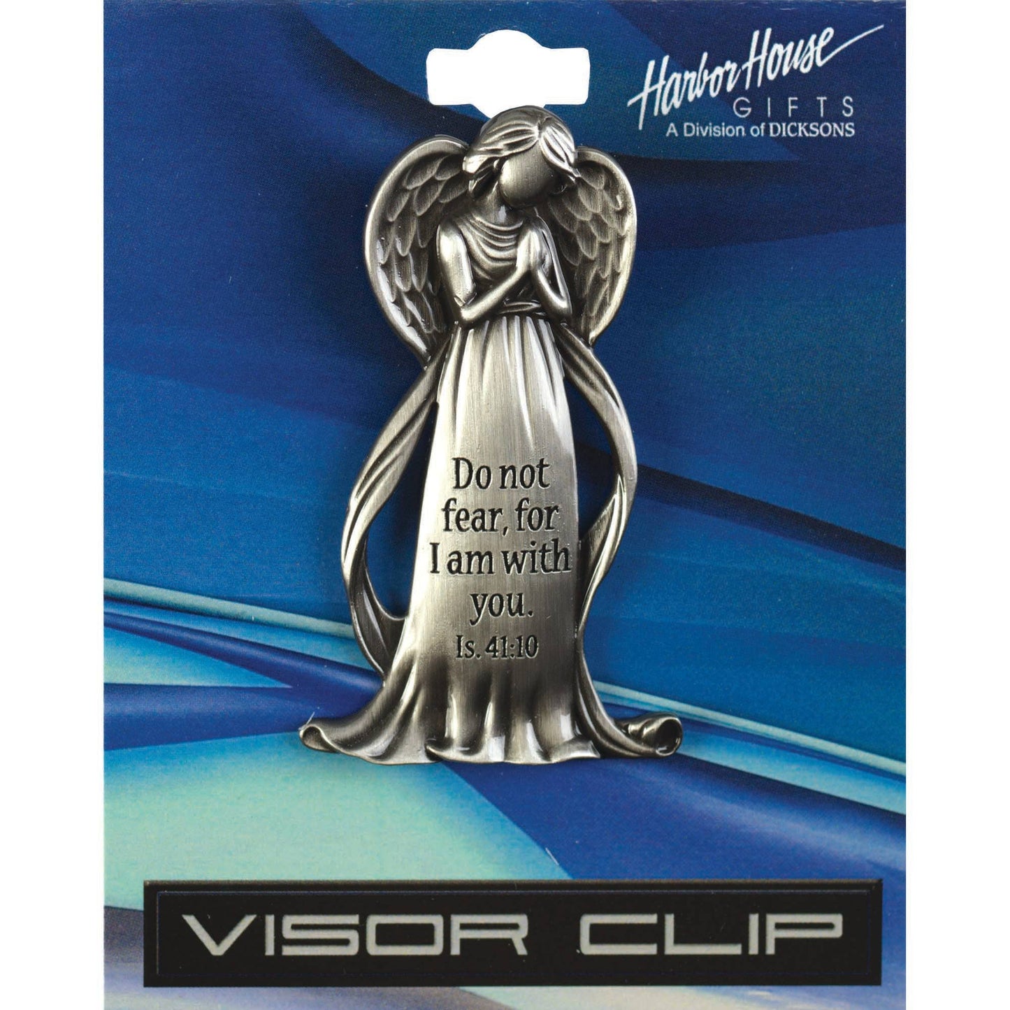 Guardian Angel auto visor clip is engraved with "Do not fear for I am with you" from Isaiah 41:10. Antique silver tone zinc alloy clip is 2 1/2" high. Comes on hanging header card.