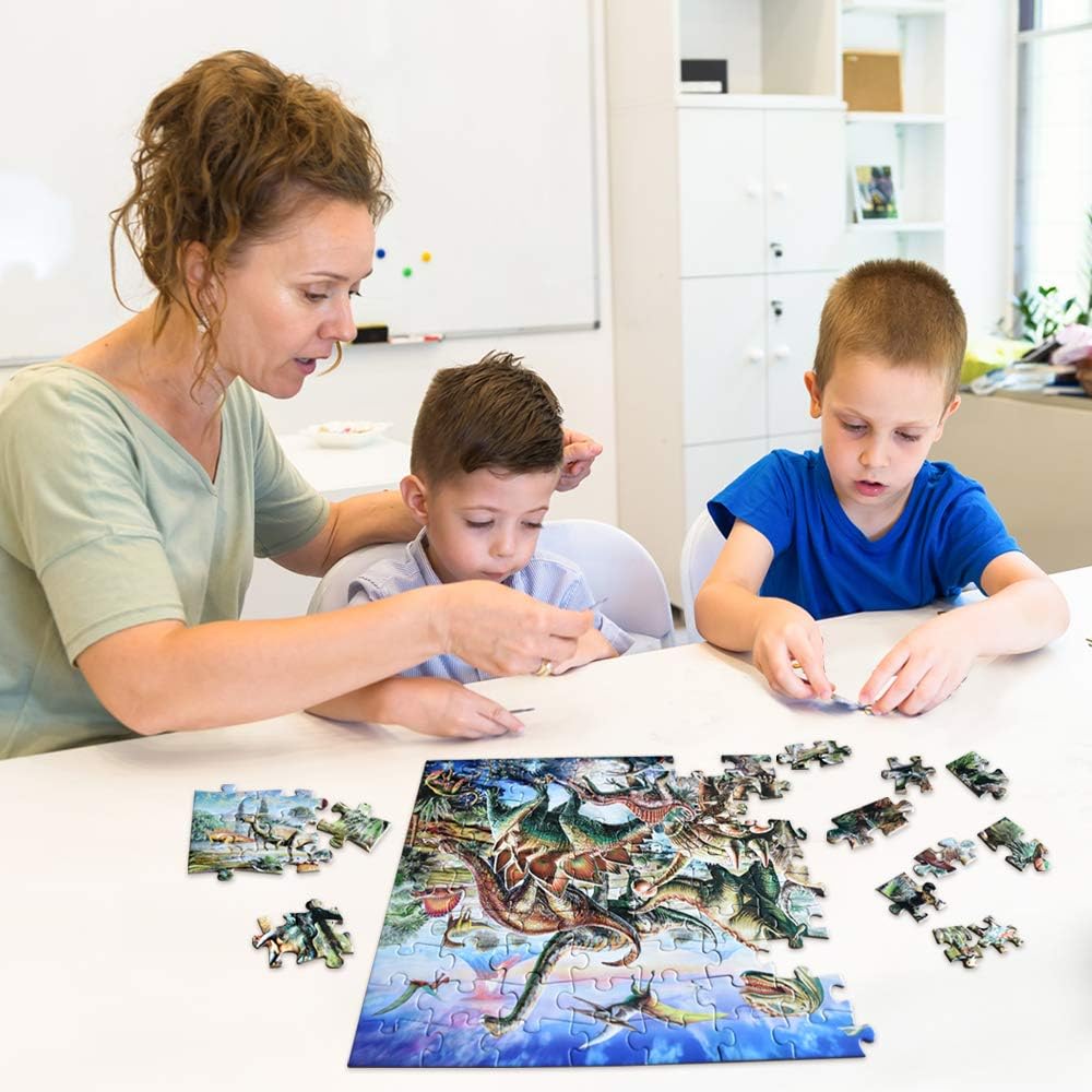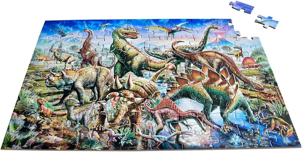 - The puzzle image consists of a diverse range of dinosaurs, it's a great way to introduce younger children to dinosaurs, as well as being a fun educational tool, this 100 pieces jigsaw puzzle helps with hand-eye coordination and observational skills.