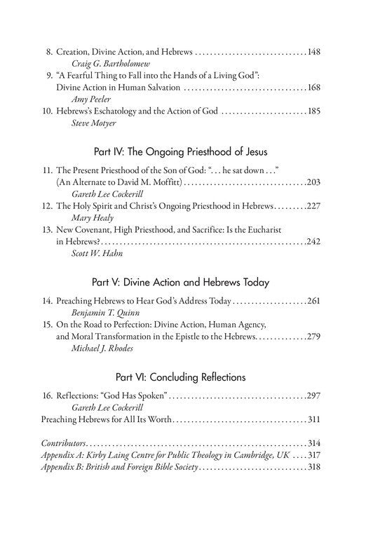 • provide an overview of the reception history of Hebrews in theologies of divine action;