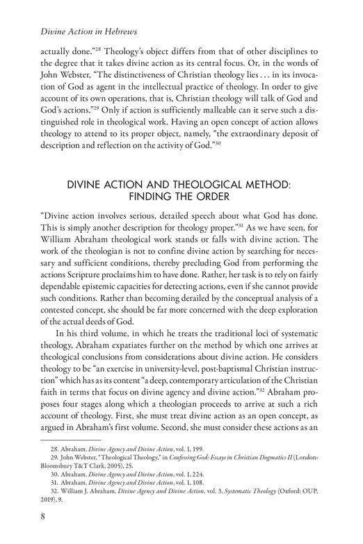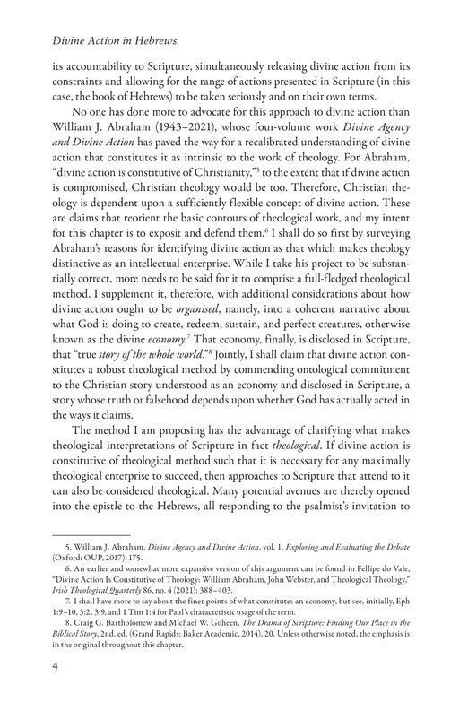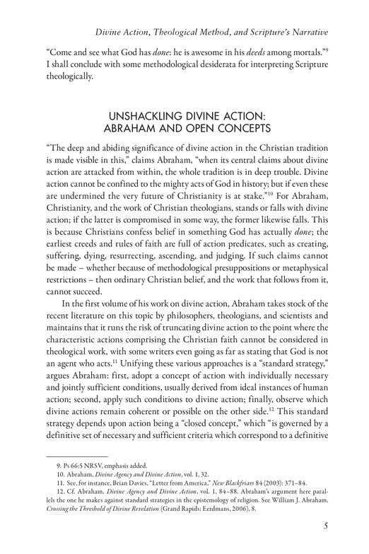 • offer an overview of the current state of discussion of divine action and the importance of exploring divine action in specific biblical texts, with special reference to William Abraham's recent 4 volume work with OUP;