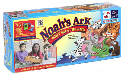Noah’s Ark Don’t Rock the Boat! is a suspenseful balancing game that challenges children’s curiosity and focus while learning animal facts and emotional cues. HOW TO PLAY: 1. Draw from the animal card deck 2. Read the fun facts out loud 3. Find the animal figurine and place on the boat. Find the correct balance and DON’T ROCK THE BOAT!