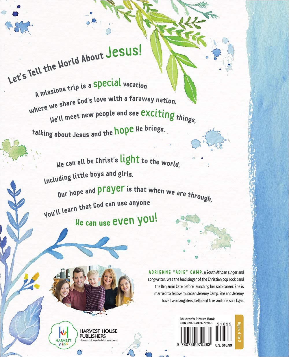 As Bella and Arie’s adventure unfolds, children will experience a new culture and see what a short-term mission trip looks like, from fundraising to service projects to sharing about Jesus. They will learn that regardless of culture, class, or color, all people are made in God’s image and loved equally by Him.