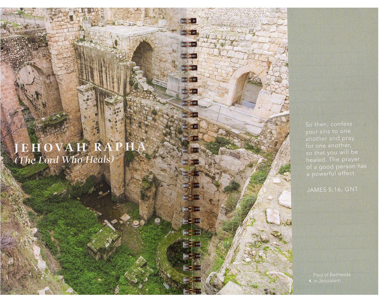 Journey into the Heart of God and Learn a Better Way to Pray! There are many things God wants to reveal inside of you. Now you can go on a journey of fellowship in Experience the Peace of Israel: A Journal. Bring your heart to the pages of this gorgeous journal, including breathtaking photos of the Holy Land, faith-building verses, and powerful Hebrew names of God that will encourage and inspire your writing time. For your purchase you’ll receive Experience the Peace of Israel: A Journal to inspire you to delve deeper into intimacy with God. The back cover beautifully displays this inspirational Scripture verse from Proverbs 18:10 … “The word of the LORD is a strong tower; the righteous runs into it and is safe.” Note: The pages of the book are unnumbered, but the book is about one-half inch thick