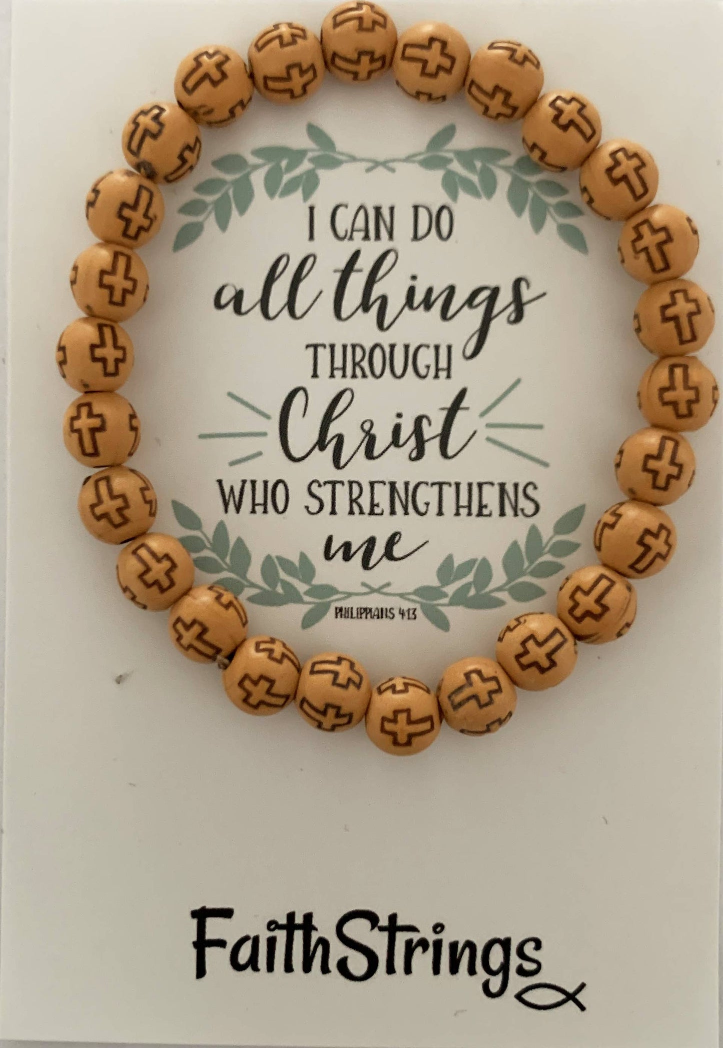 Faithstrings - All things Christian Wood Acrylic Bead Stretch Bracelet