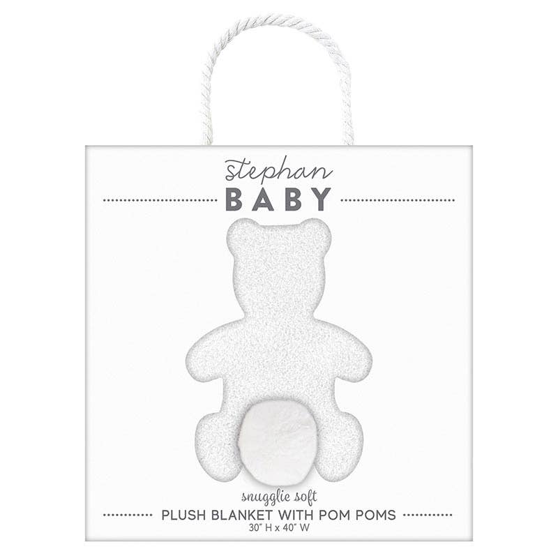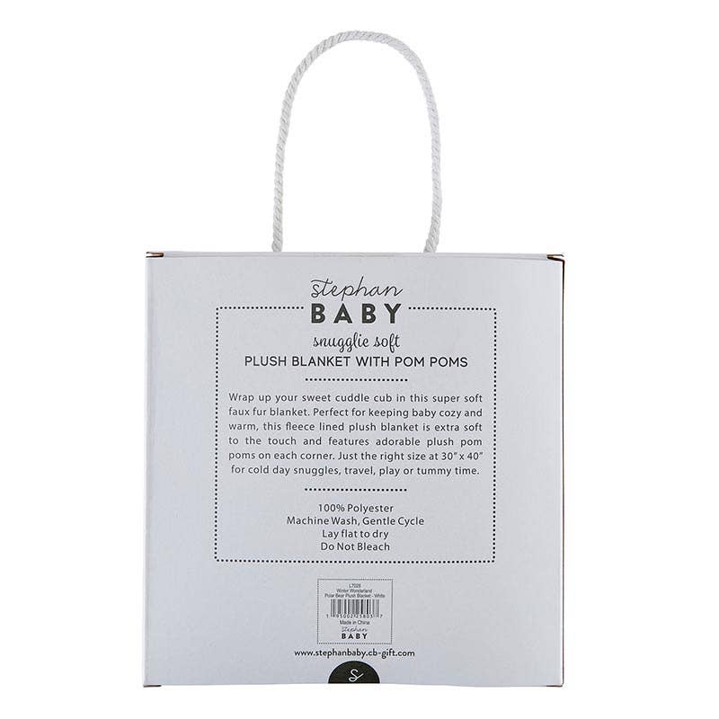 Wrap your sweet cuddle cub in this super soft faux fur blanket. Perfect for keeping baby cozy and warm, this fleece lined plush blanket is extra soft to the touch and features adorable plush pom poms on each corner. Just the right size at 30" x 40" for cold day snuggles, travel, play, or tummy time.