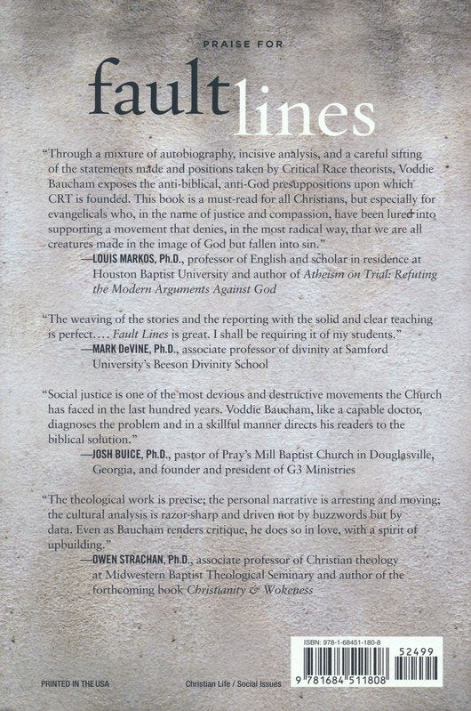 In this powerful book, Voddie Baucham, a preacher, professor, and cultural apologist, explains the sinister worldview behind the social justice movement and Critical Race Theory—revealing how it already has infiltrated some seminaries, leading to internal denominational conflict, canceled careers, and lost livelihoods. Like a fault line, it threatens American culture in general—and the evangelical church in particular.