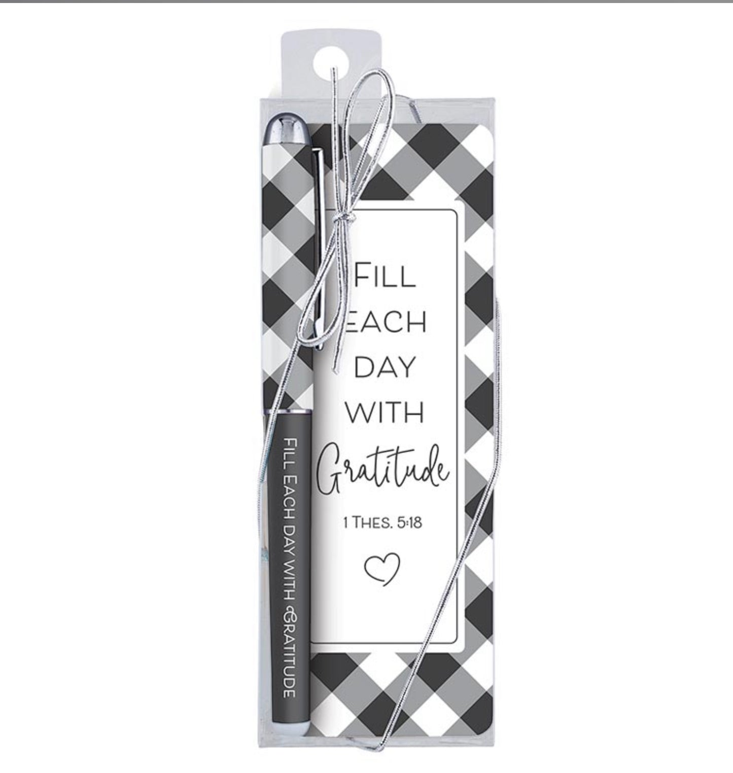 - Front Reads: Pen: Fill each day with gratitude, Card: Fill each day with gratitude - 1 Thes. 5:18