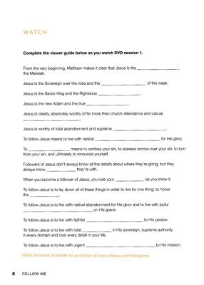 When Jesus says, "Follow Me," it's not an invitation to say a prayer, it's a summons to lose our lives. In this follow-up to Radical, Pastor David Platt challenges the traditions of cultural Christianity and reintroduces us to Jesus and His most simple request: Follow Me. This member book features viewer guides and discussion questions for each of the six sessions plus six weeks of personal Bible study (5 days a week). Each week of the Bible Study a Scripture Memory is provided.