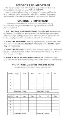 - Report new student enrollment, total attendance, number absent and offering to the secretary after each session.