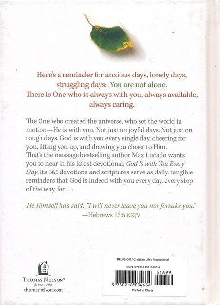 A spirit-boosting 365-day devotional from the master storyteller whose voice you trust! Weaving reassuring messages of comfort, grace, and encouragement together with scriptural truths, Pastor Lucado helps those going through difficult seasons such as loneliness, grief, or change understand that they are always loved and never alone. 400 pages, hardcover from Nelson.
