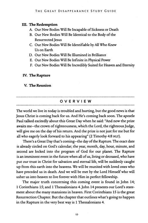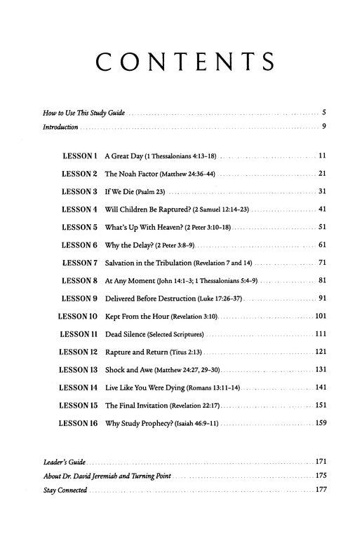 In this seven-session Bible study, trusted Bible teacher and pastor Dr. David P. Jeremiah unfolds the Second Coming of Christ in stunning clarity. He unfolds decades of research to bring understandable answers to key questions. In doing so, Dr. Jeremiah gives us 31 ways to be ready for the rapture and shows us how we can live in the here and now on earth