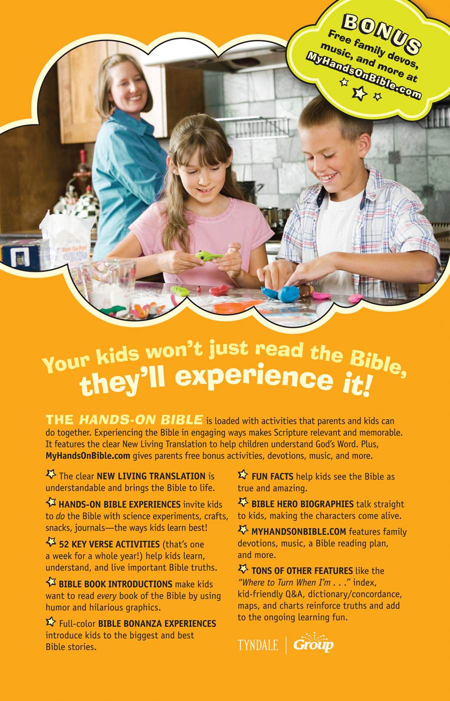 Jesus taught with hands-on lessons and illustrations. The Hands-On Bibleuses the same experience-based learning to communicate God’s Word in an active, understandable way. With hundreds of fun, memorable activities, the Hands-On Bible is packed with activities and experiences that invite kids aged 6-12 to crawl inside the Scriptures and do God’s Word! Exciting Bible features include: