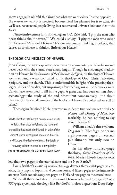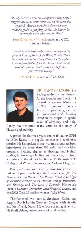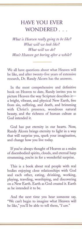 As the years pass and we watch more and more of our family, friends and mentors pass away, it is only natural to ask questions about heaven. However, our understanding of heaven is often limited to a few half-forgotten Sunday school lessons and the insubstantial images provided by popular movies and T.V. Fortunately, in Heaven Randy Alcorn provides us with a thoroughly researched and biblically definitive description of heaven. As Alcorn addresses our most serious questions about heaven, including the nature of judgment, and answers a few of our less serious questions as well, including the accessibility of cafe mochas in the sweet by and by. Readers will develop a deeper understanding of our eternal destination and find the courage to strive for heaven while living on earth