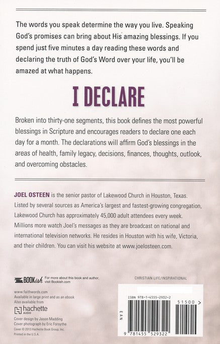 From the chart-topping author of Your Best Life Now comes a stirring collection of 31 devotions to help you understand the power of the spoken word. Each day opens with a faith-building declaration followed by Scripture and a story that demonstrates the mighty ability of God. Learn to "speak favor over your future"! 192 pages, softcover from Faithwords