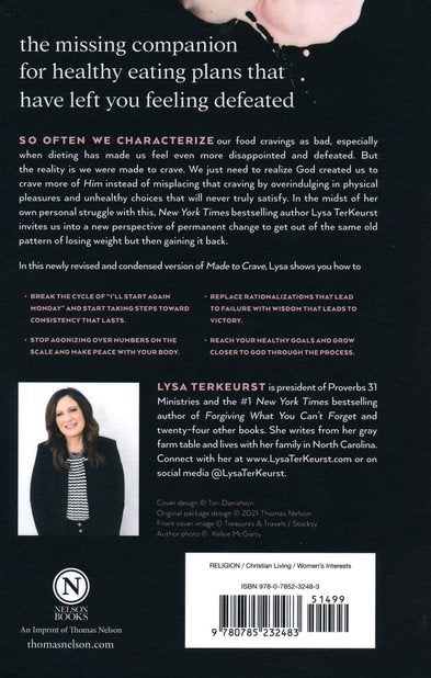 Feeling stuck in an endless loop of losing and regaining weight? TerKeurst understands the struggle and invites you to take a new approach. In this revised and condensed edition of Made to Crave, she'll help you make peace with your body, replace rationalizations with wisdom, reach healthy goals, and grow closer to God. 160 pages, hardcover from Nelson.