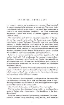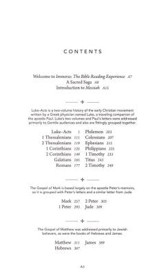 Designed to prompt discussion and be read along together with other believers, Immerse: Messiah will take you through the entirety of the New Testament - from Matthew to Revelation. References to the chapter and verse have been removed from the text but remain as a single notation at the top corner of each page so that traditional Bible navigation is retained for familiarity.