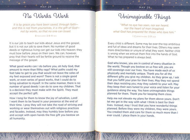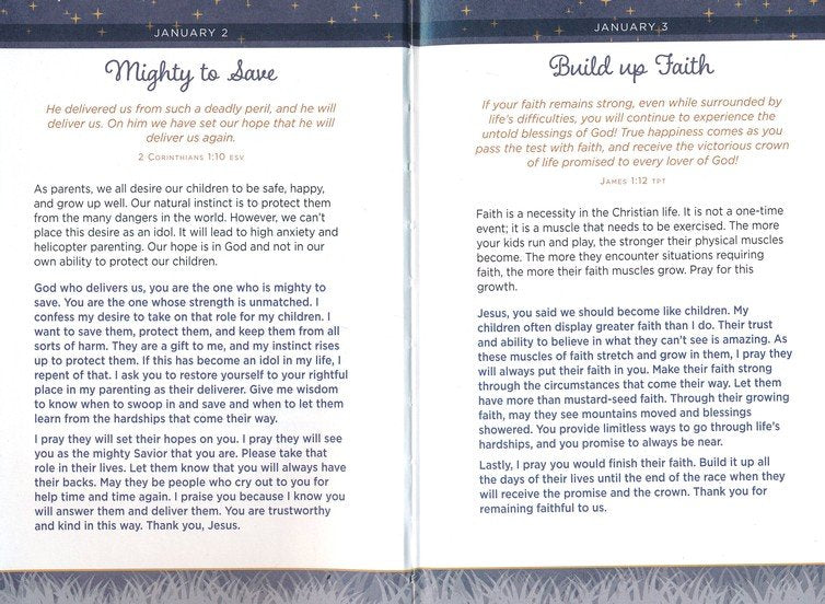 * We can't protect our children every minute---as much as we wish we could! But we can commit them to the all-seeing, all-loving, and all-powerful Lord in prayer. You'll find a framework for doing just that in this beautiful go-everywhere volume---filled with 365 Scripture-based prayers for protection, health, peace, joy, purpose, and more. 384 pages, gray imitation leather from Broadstreet.