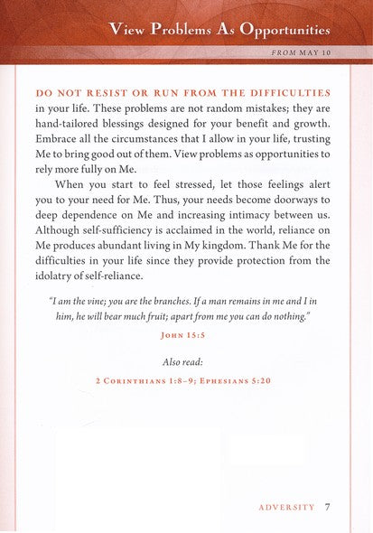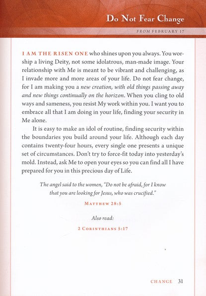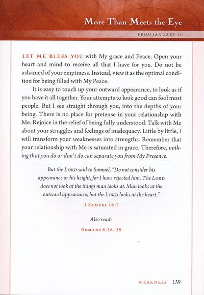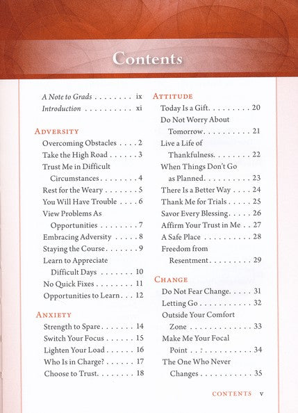 Jesus Calling for Graduates offers 150 topically arranged readings selected from the bestselling devotional Jesus Calling. Highlighting topics like attitude, perspective, and discerning God's will, these devotions are written as if Jesus is speaking directly to you. Relevant and encouraging, they provide hope and encouragement as graduates step into a brand new world with new experiences. Features include a hardcover binding, a ribbon bookmark, and a presentation page for gift-giving.