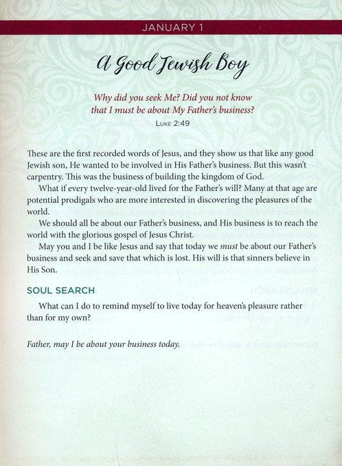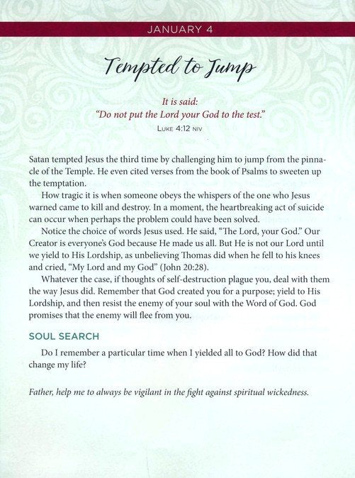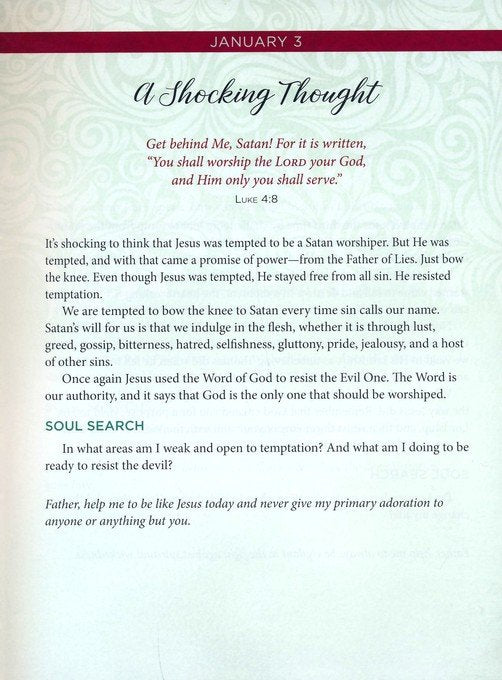 Jesus in Red is a daily devotional, including Jesus' words highlighted in red, short meditations, soul-searching questions, and inspiring prayers.