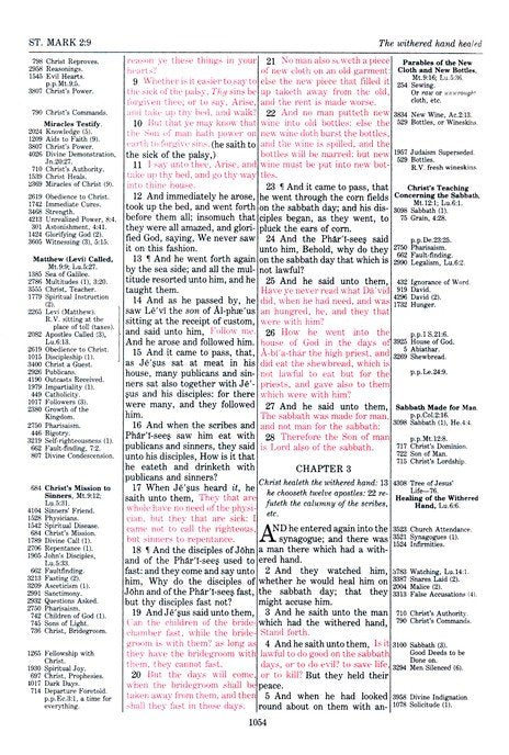 Scripture is presented with a reference system that acts as a guide, not merely a tool, allowing you to explore a specific topic methodically through the entirety of the text. Relevant scripture verses are linked together, with over 100,000 topical references and 8,000 chain topics, enabling a study of the Bible that is relevant for all of the faithful- from those interested in what the Bible says about a particular word of interest to those wanting to prepare a sermon that delivers the unity of God's special revelation to a divided world.
