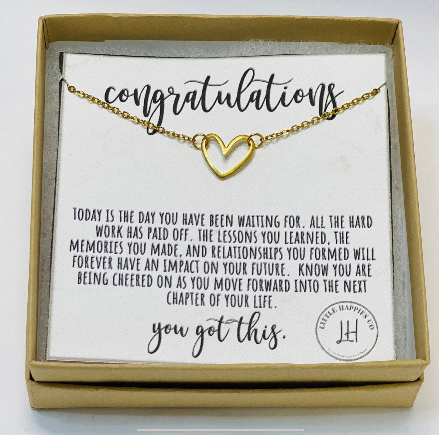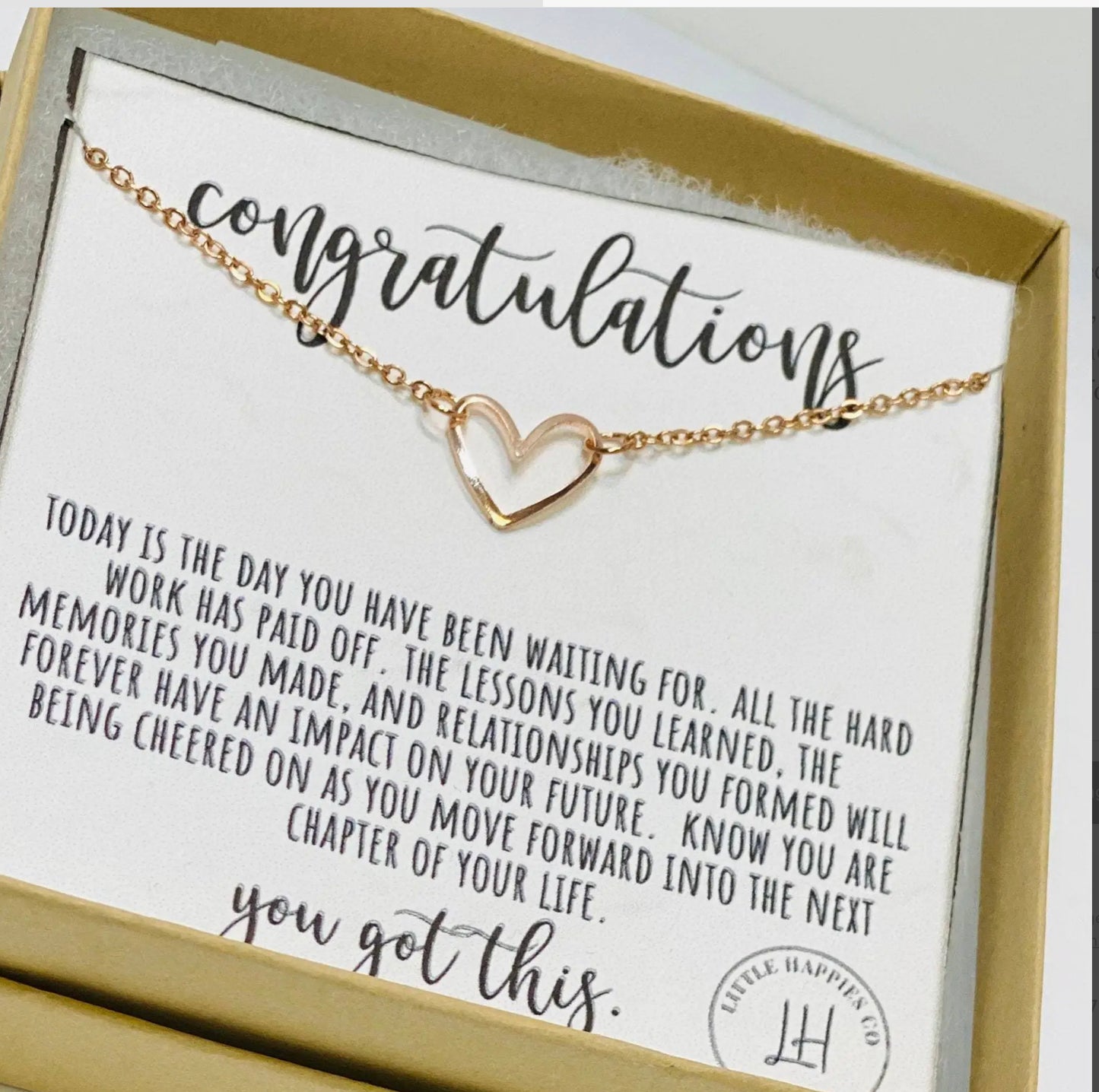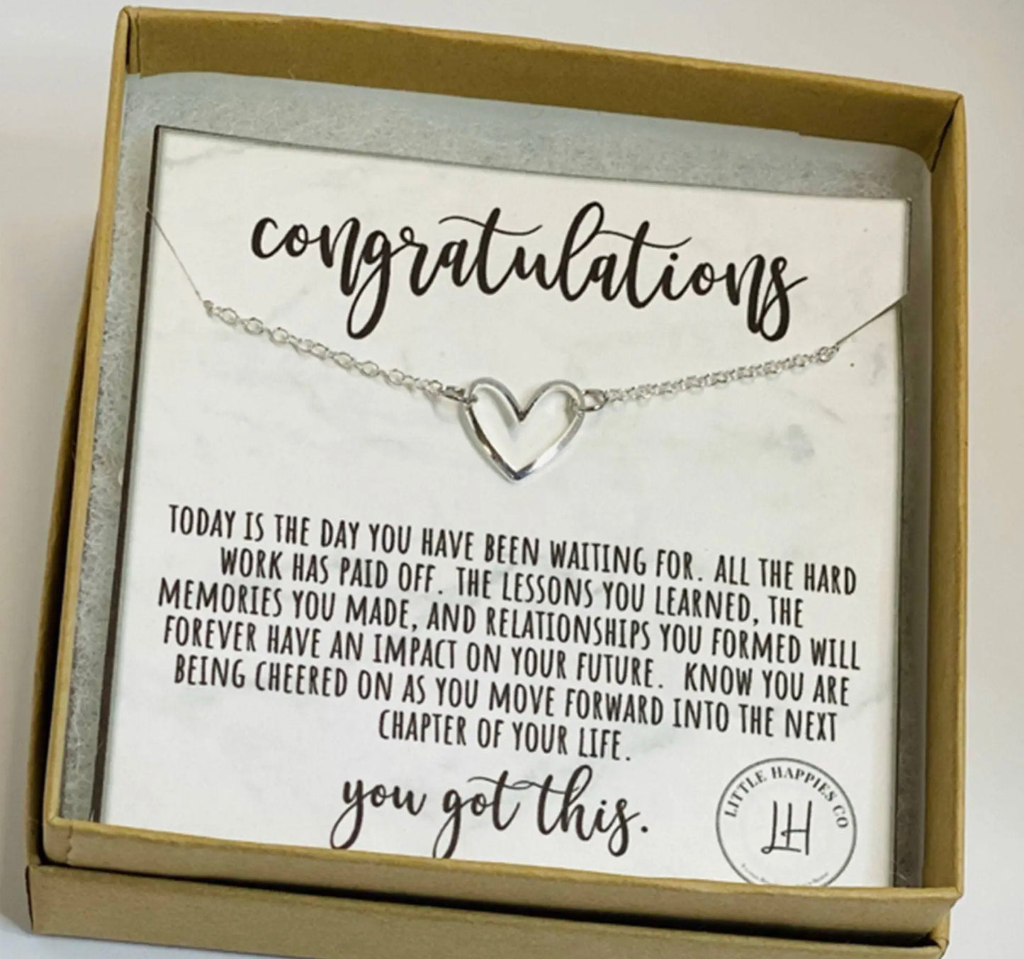 Celebrate your favorite 2021 graduate with this stunning graduation necklace. Crafted in gold, rose gold or silver, this grad gift features a polished open heart suspended from an 18" chain. Necklace closes with a lobster clasp.